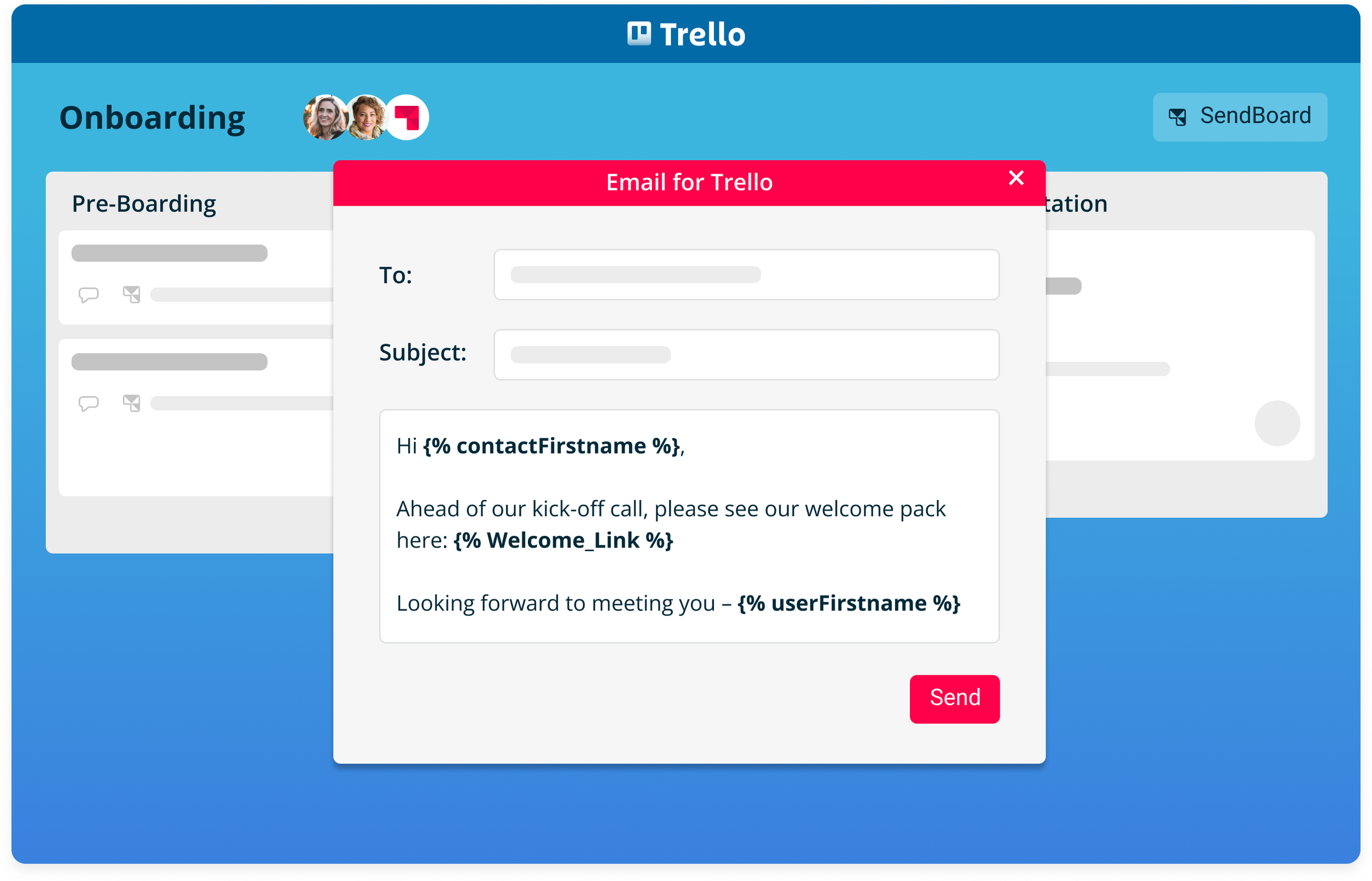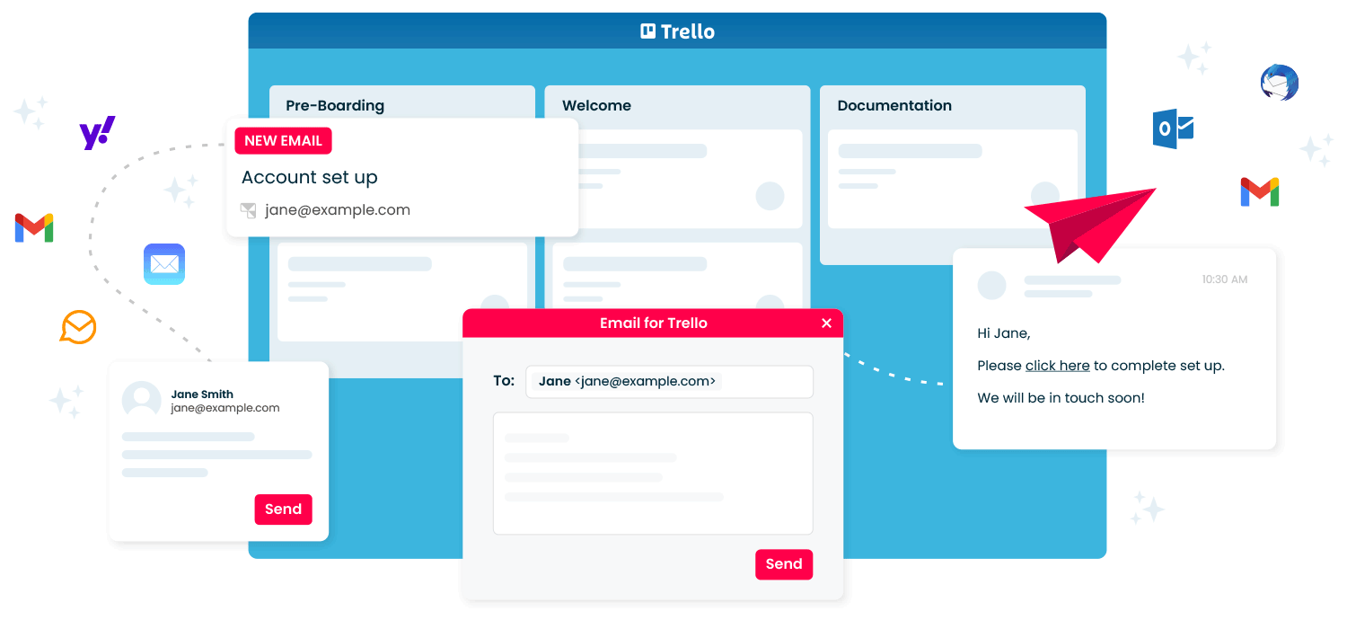 Whether you're onboarding clients, customers, or employees, Email for Trello can help your team organize their pipeline, discuss to-dos, and handle email outreach – all in one workflow.